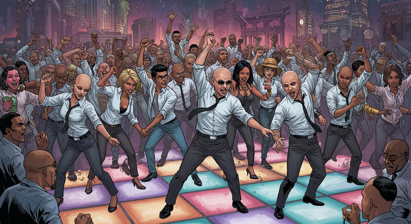 Somewhere between flash mob and elaborate inside joke sits the peculiarity now circling the globe on Pitbull’s “Party After Dark” tour: battalions of fans in black suits, white shirts, black ties—and, crucially, bald caps, parading through city streets like alumni of a seminar in worldwide readiness. If you glimpsed thousands of “Pitbulls” descending on London this week, you weren’t seeing double. You were witnessing a fandom that’s elevated “concert outfit” to something closer to synchronized, communal cosplay.