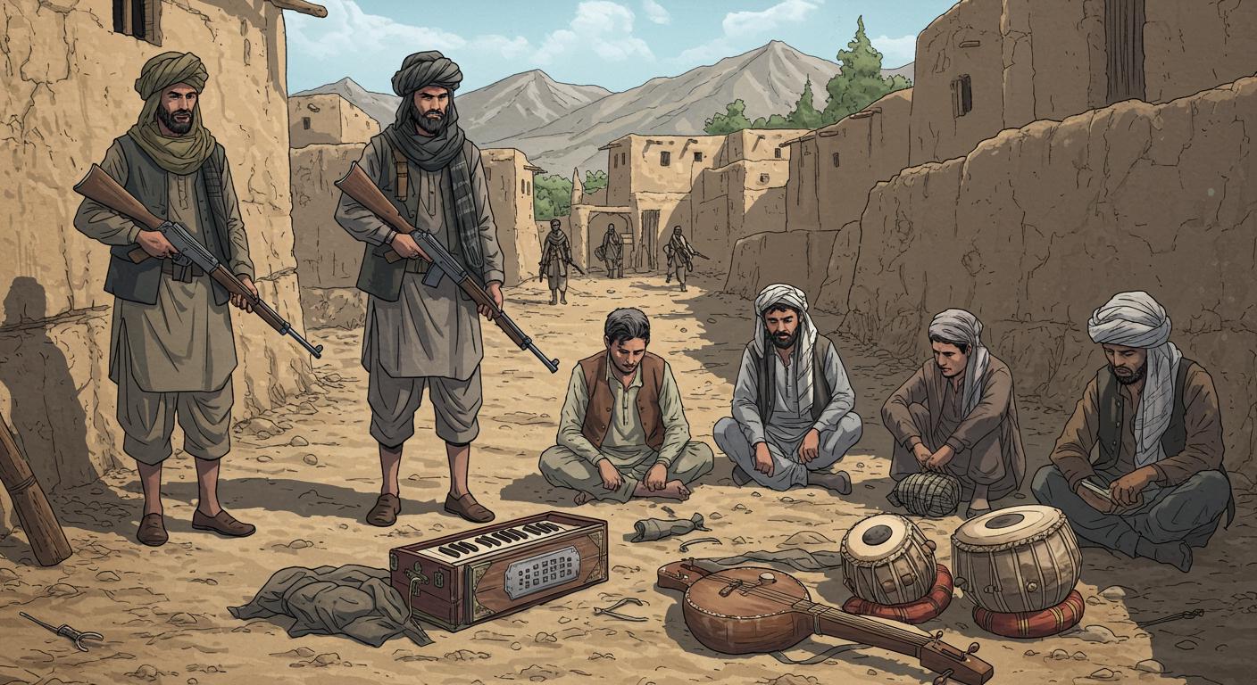 Sometimes, “the music police” isn’t just a figure of speech. In what sounds like the setup to a particularly dystopian joke, authorities in Afghanistan’s Takhar province recently arrested 14 people for—yes, really—singing and playing instruments at a private nighttime gathering.