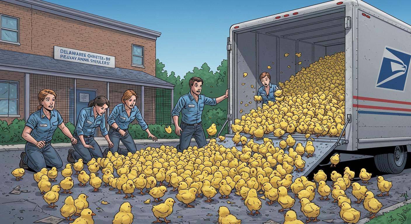 Live animals in the mail—already an odd sentence—took a turn for the even stranger in Delaware this month. An animal shelter in Camden is now scrambling to care for thousands of baby chicks discovered abandoned inside a USPS truck. The incident is something between a modern parable about supply chains and a how-did-this-happen scenario fit for the annals of improbable logistics.