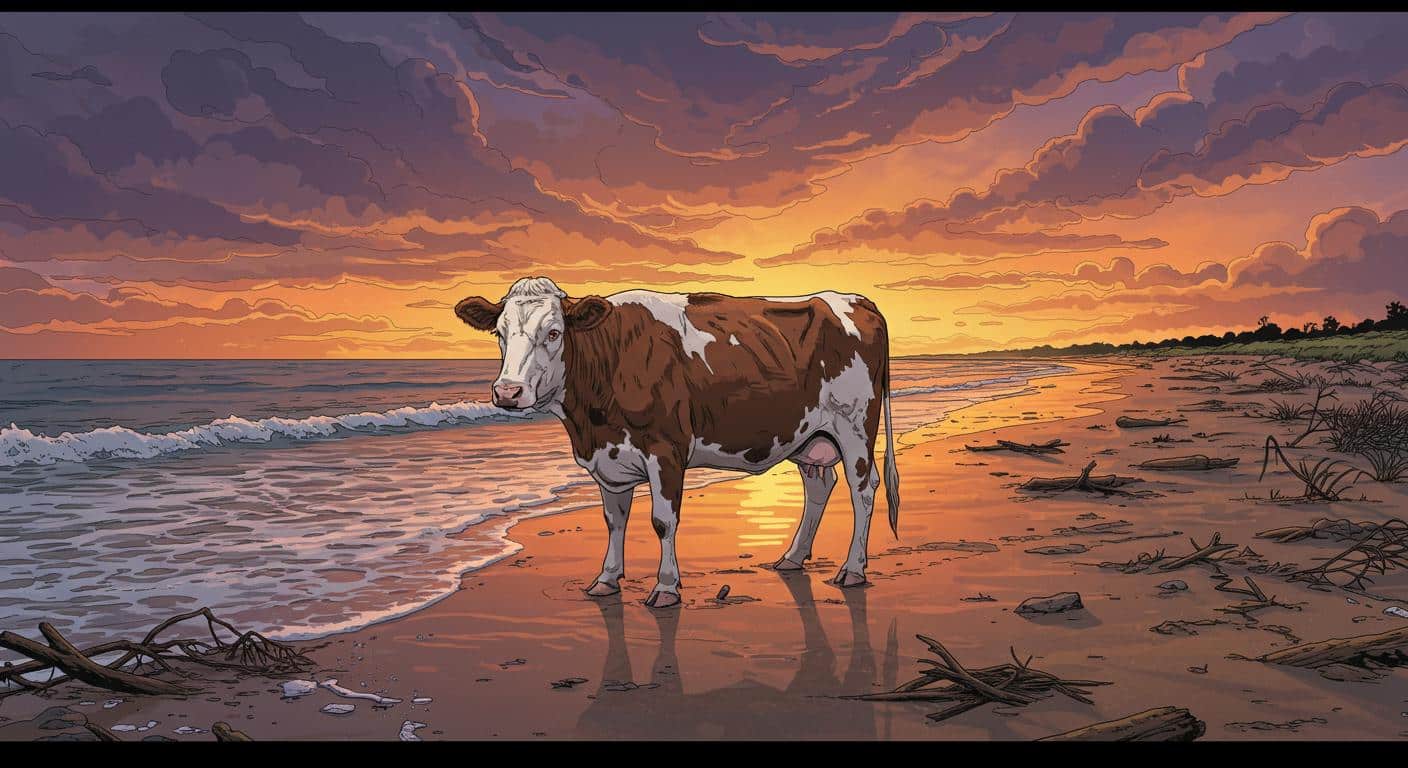 Does the cow, newly acquainted with saltwater and seagulls, simply shake off the journey as an odd dream, or is there some deeper ruminative confusion? Anthropomorphism aside, what’s apparent—per UPI’s reporting—is the adaptability these animals display when faced with nature’s curveballs. Stand up, shake off, accept the next turn.